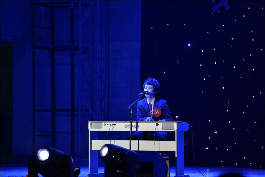 电信系的姜子伦同学第16位出场,虽然出场顺序比较靠后,但他丝毫没有受到前面选手超强发挥的影响,依旧从容的展现了自己的实力。他带来的表演是钢琴弹唱苏打绿主唱吴青峰的《我好想你》,这也是郭敬明同名小说《小时代》改编电影的主题曲。姜子伦同学阴柔抒情的嗓音搭配钢琴,最真实地表达了歌曲中蕴含的柔软而又惆怅的情感。从琴声响起的那一瞬间,全场都安静下来了,大家的思绪也仿佛随着音符渐渐飘离,无一不沉醉在这美妙的音乐中。