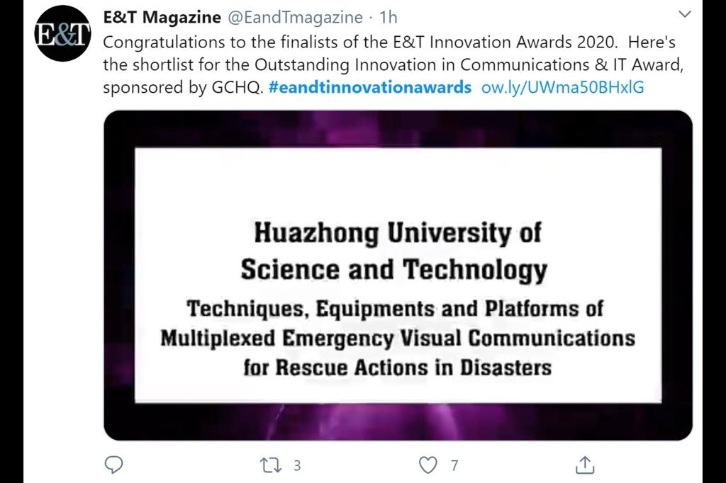 近日,英国工程技术学会(IET)主办的IET创新技术奖(IET Innovation Award)揭晓了本次各个奖项的提名以及最终获奖团队。其中,QY千亿球友会QY千亿球友会杨铀副教授带领的团队获得“通信与信息技术”杰出创新奖的提名。杨铀副教授及其团队的创新研究成果“Techniques, Equipments and Platforms of Multiplexed Emergency Visual Communications for Rescue Actions in Disasters”,此项研究成果是视觉感知与通信工程技术相结合的产物,重点解决在灾害救援现场断电、断网、断路等极端条件下的多体制通信重建、视频等大带宽业务融合传输难题。