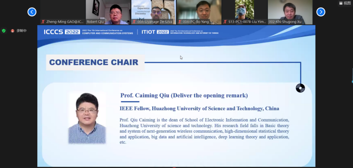 4月22日-25日,由电气与电子工程师协会(IEEE)主办、QY千亿球友会QY千亿球友会,QY球友会体育官方网站承办的2022年第七届计算机与通信系统国际会议(ICCCS)成功举办。本届会议受新冠疫情影响,采用线上会议形式,来自中国、美国、加拿大、日本、韩国、缅甸等国家的200余名专家学者及在校学生齐聚云端,就计算机和通信系统领域的各个方面展开了深入交流和讨论。