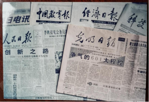 EIM-601大容量局用数字程控交换机(简称EIM-601)开发则是20世纪末电信系执行原电子工业部下达任务投身的一次重大科研战役。黄载禄教授担任科研组组长,全系七十余名师生与原电子部第五十四研究所合作承担研制开发工作。在两年日以继夜的科研攻关中,师生们大胆创新、忘我工作,经常顾不上吃饭,通宵达旦,克服了常人难以想象的诸多困难,终于完成了繁重的软硬件工作任务,于1995年4月8日顺利通过了国家鉴定和验收。该成果是电信系师生们心血汗水与坚强意志的结晶,是我国通信行业发展中攻坚克难的真实缩影和生动写照,它打破了外国人长久以来对电信网统一维护核心技术的垄断,是我国自主数字通信产业的起点,获原电子部1995年科技进步特等奖。《人民日报》《光明日报》在同年6月20日分别以《创新之路》《争气的601大程控》为题,作头版头条报道,誉之为“民族工业的骄傲”。这一成果在学校和电信学科的发展历史上写上了浓墨重彩的一笔,激励一代代华中大电信人在创建世界一流大学和一流学科的道路上奋勇争先、砥砺前行。
