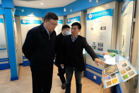 中共中央政治局原常委、全国政协原主席,时任中共中央政治局委员、湖北省委书记俞正声同志参观QY千亿球友会科研成果