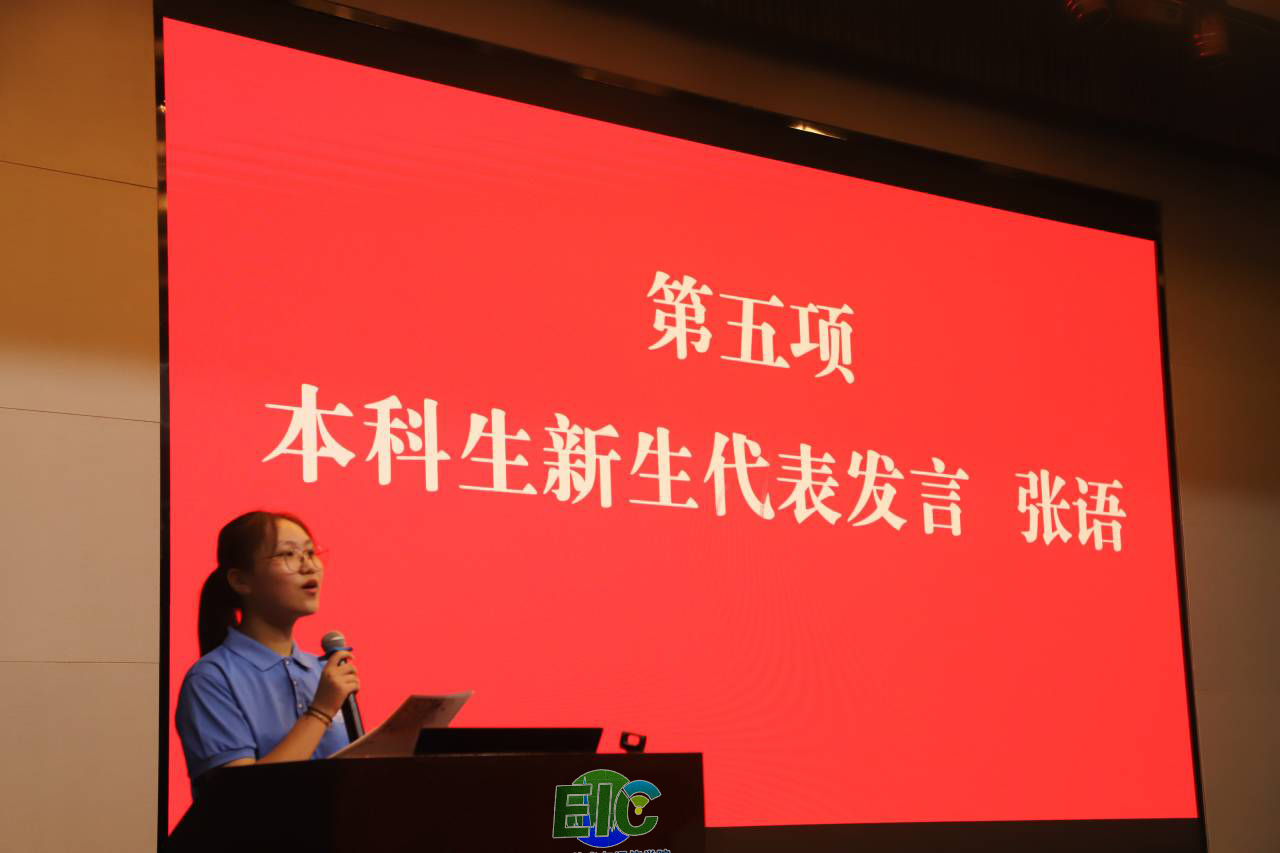 本科生新生代表张语立足于青年视角,表示新青年当“不驰于空想,不骛于虚声”,在端正心态中潜心笃学,在兴趣领航中善作乐学,在自强不息中勇攀高峰,将个人奋斗与国家发展同频共振,保持热爱奔赴属于自己的山海。