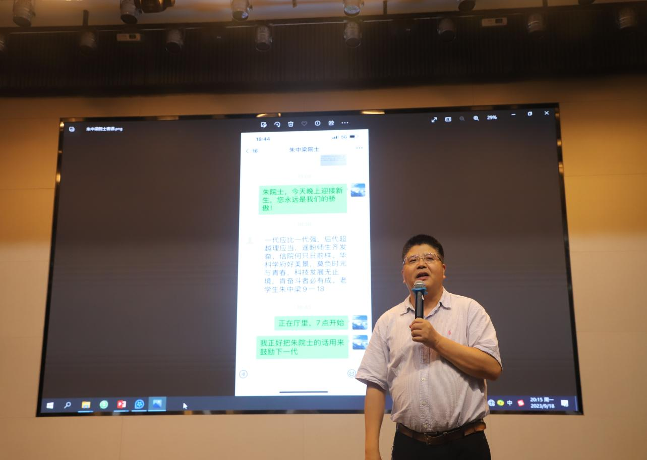 教师班主任、研究生导师代表王兴刚教授以自身经历为同学们讲述了华中大电信的奋斗之路。他放弃优厚待遇,选择留校任教,扎根国家社会需要,成功突破国产AI算力瓶颈。王兴刚教授勉励同学们要“积极向上,持续进步”、“探寻目标,长远规划”、“抱团学习,借势而起”期望同学们为民族复兴贡献才智,走出绚烂人生路。