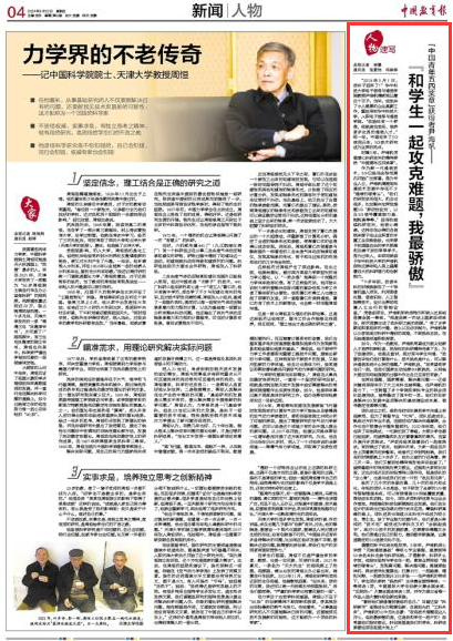 2024年5月23日,《中国教育报》以“和学生一起攻克难题,我最骄傲”为题报道QY千亿球友会教师、中国青年五四奖章获得者尹海帆与学生一同攻克技术难题的育人故事。