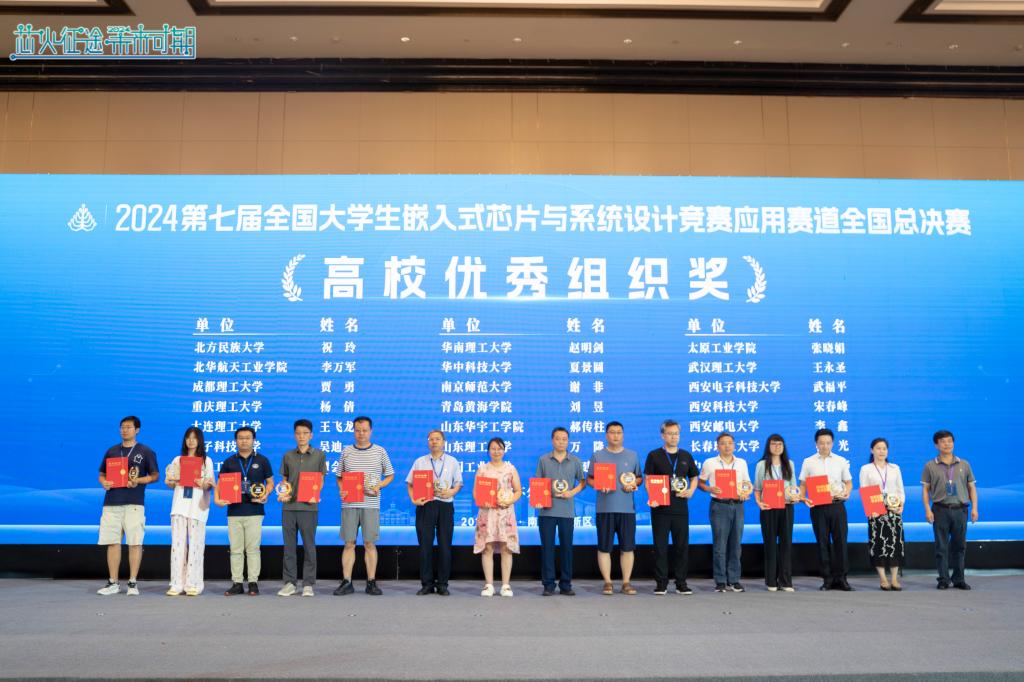 第七届(2024)全国大学生嵌入式芯片与系统设计竞赛应用赛道(以下简称“大赛”)自今年3月份启动,共设置ST、海思、沁恒、广和通、龙芯、RT-Thread共6个企业赛道。大赛吸引了来自全国552所院校的7297支队伍成功参赛。经过分赛区线上初审,全国共选出1466支队伍晋级分赛区复赛,我校有22支队伍进入复赛;经过六个分赛区线下复赛评审,角逐出230所高校的659支队伍晋级全国总决赛,我校占14支。参赛队伍数量、晋级复赛和决赛的队伍数量均创造了我校学子参加大赛以来之最。我校也被评为高校优秀组织奖。